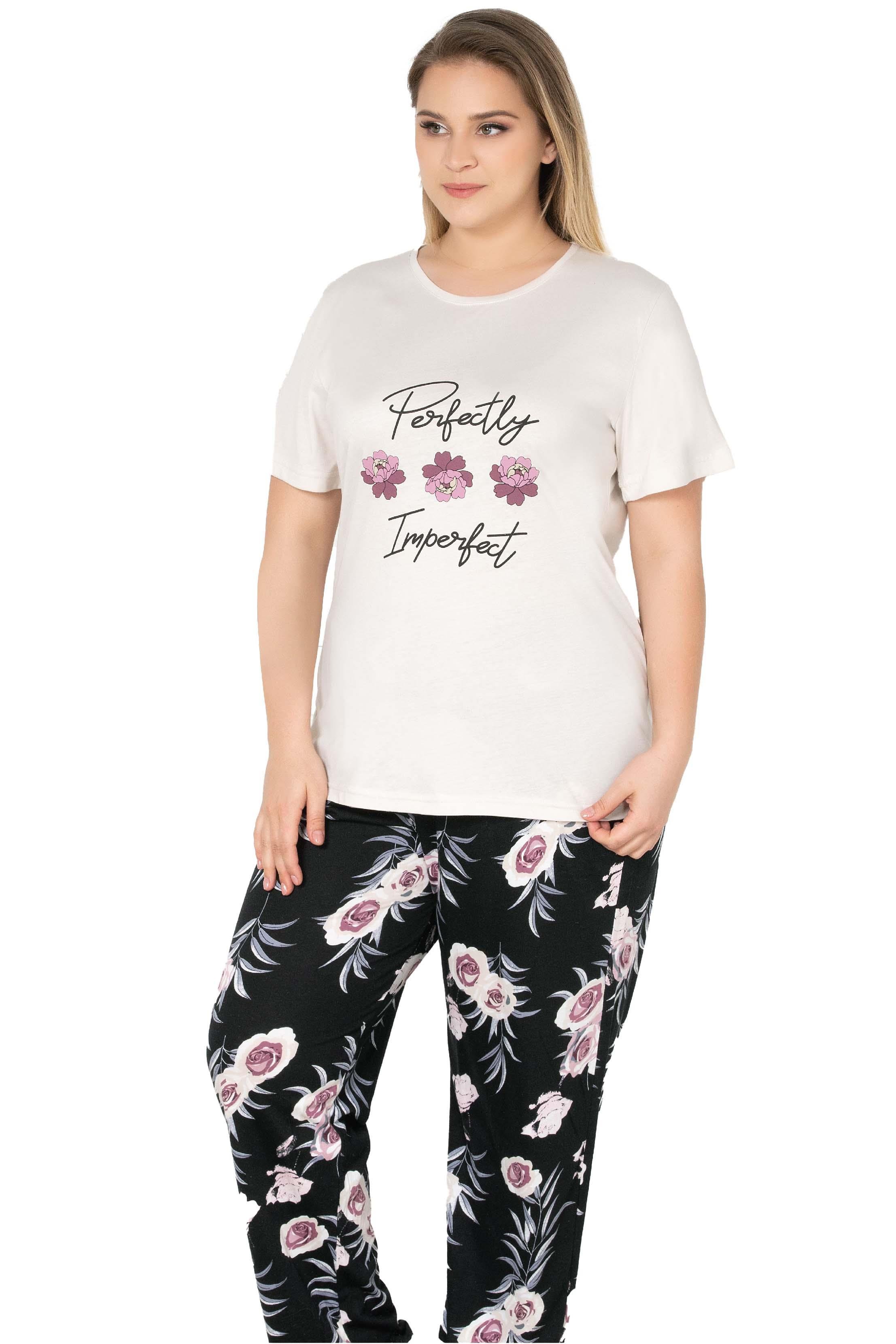 BÜYÜK BEDEN PAMUKLU BATTAL KISA KOL PİJAMA TAKIMI ALPERİ B78-104 (B78-104)