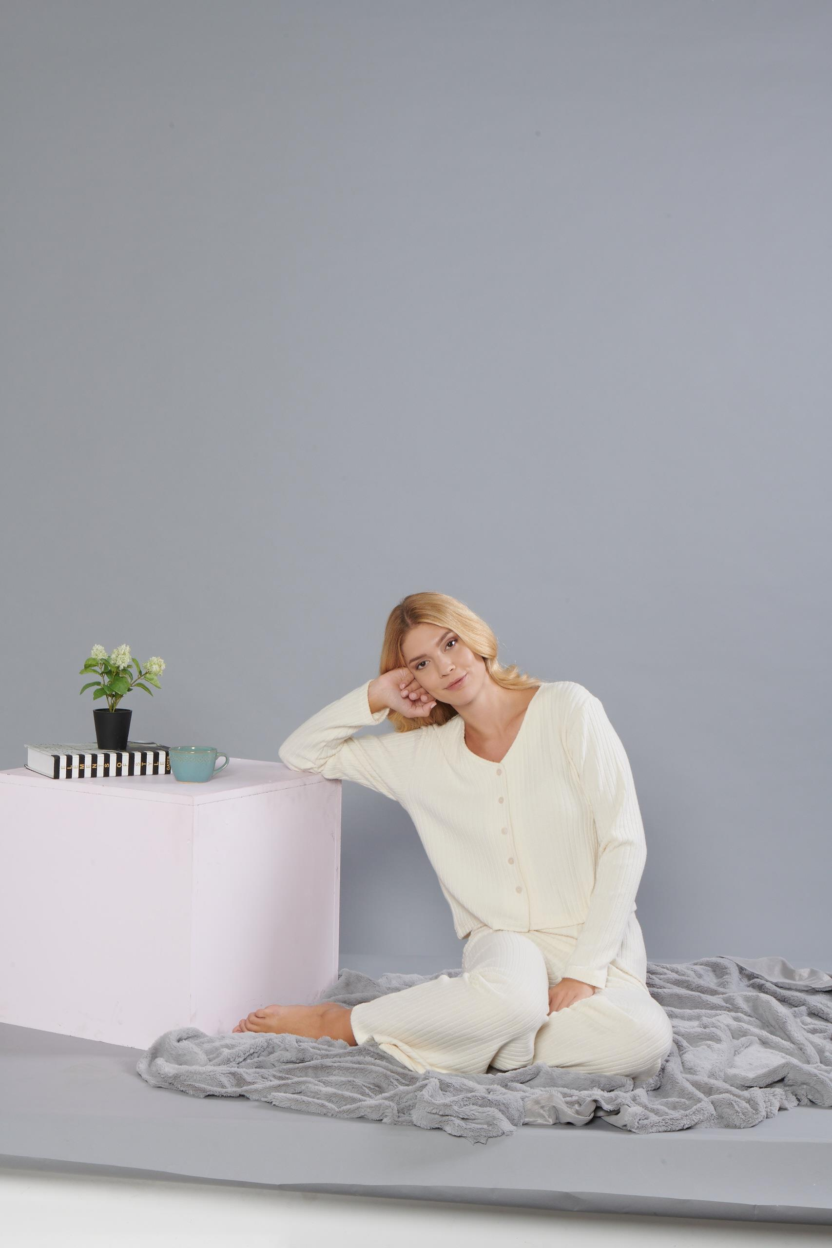 Soğuk kış günlerinde konforunuzu ve şıklığınızı bir arada yaşayın! %65 Polyester ve %35 Viskon kumaştan üretilen bu uzun kollu yumuşak dokulu pijama takımı, evde geçirdiğiniz zamanları daha keyifli hale getiriyor. Modern tasarımı, vücudu saran rahat kalıbı ve nefes alabilen kumaş yapısıyla hem sıcak tutar hem de terletmez. Hem uyurken hem de evde dinlenirken maksimum konfor sunar.